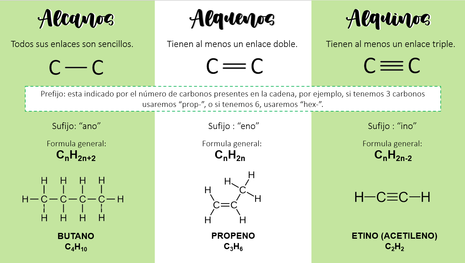 Veamos una guia rapida por los alcanos, alquenos y alquinos: